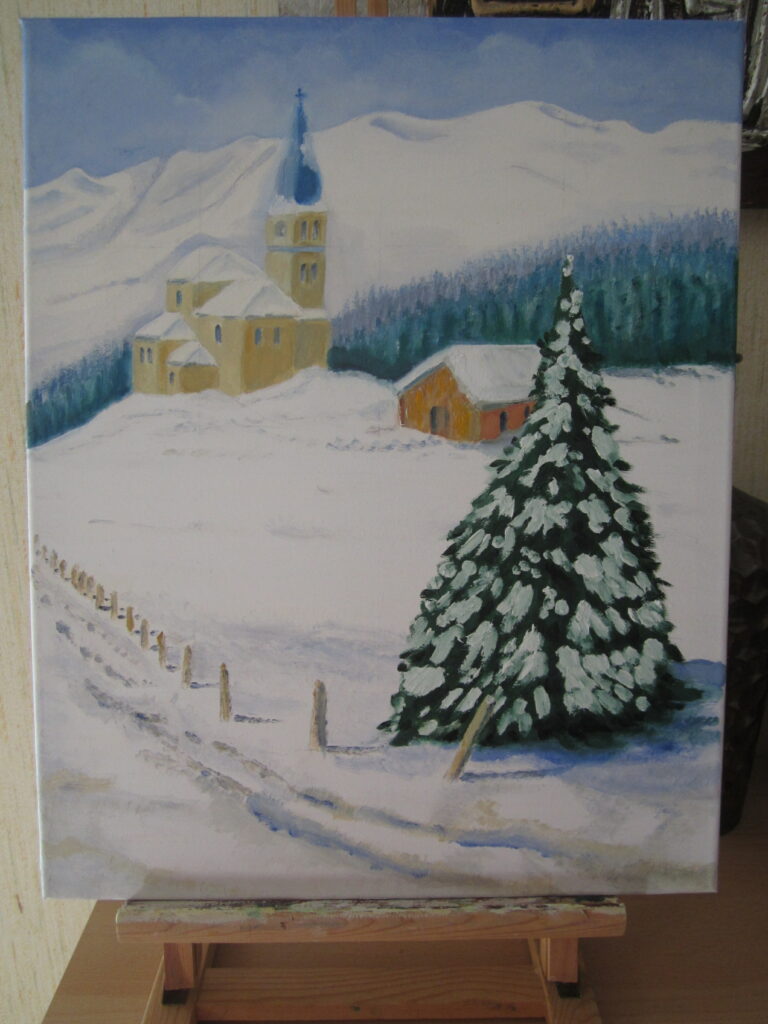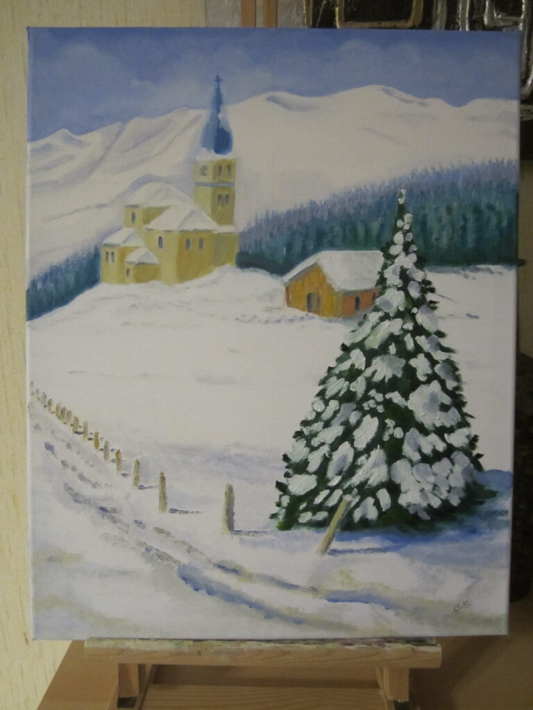 Le tableau de peinture à l’huile « Paysage d’hiver » est déjà fini.