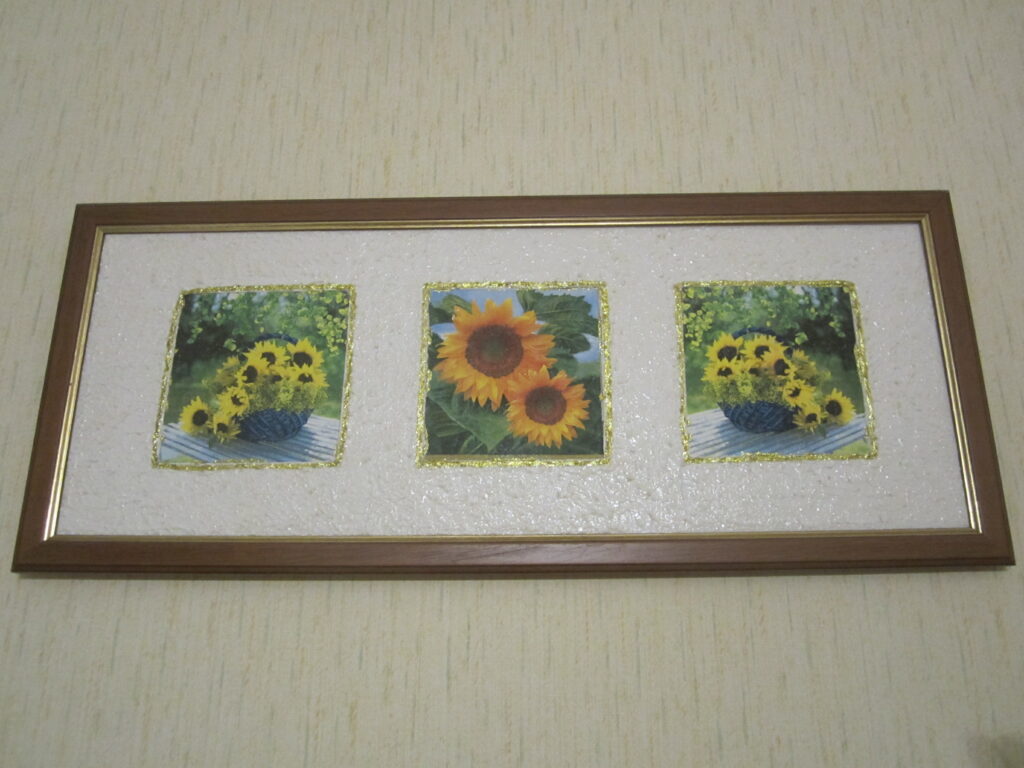 Voici un nouveau tableau avec la technique de découpage de la serviette en papier (Serviettage), réalisé par moi même, avec un encadrement: