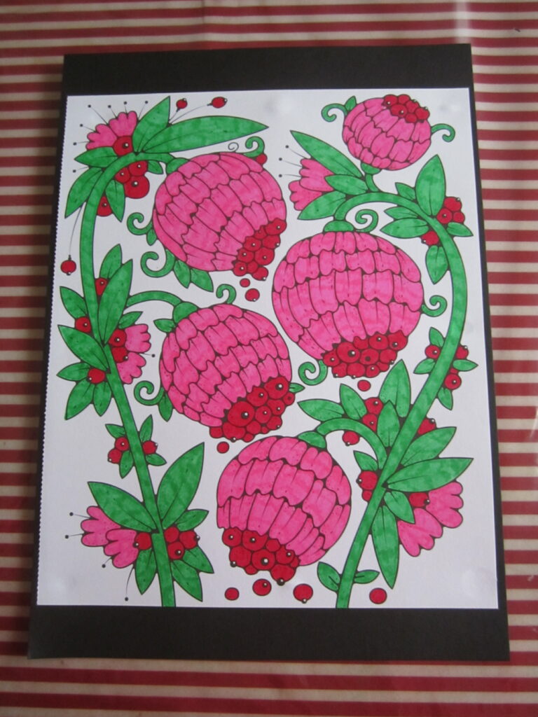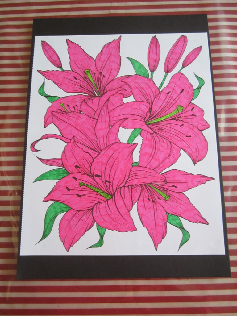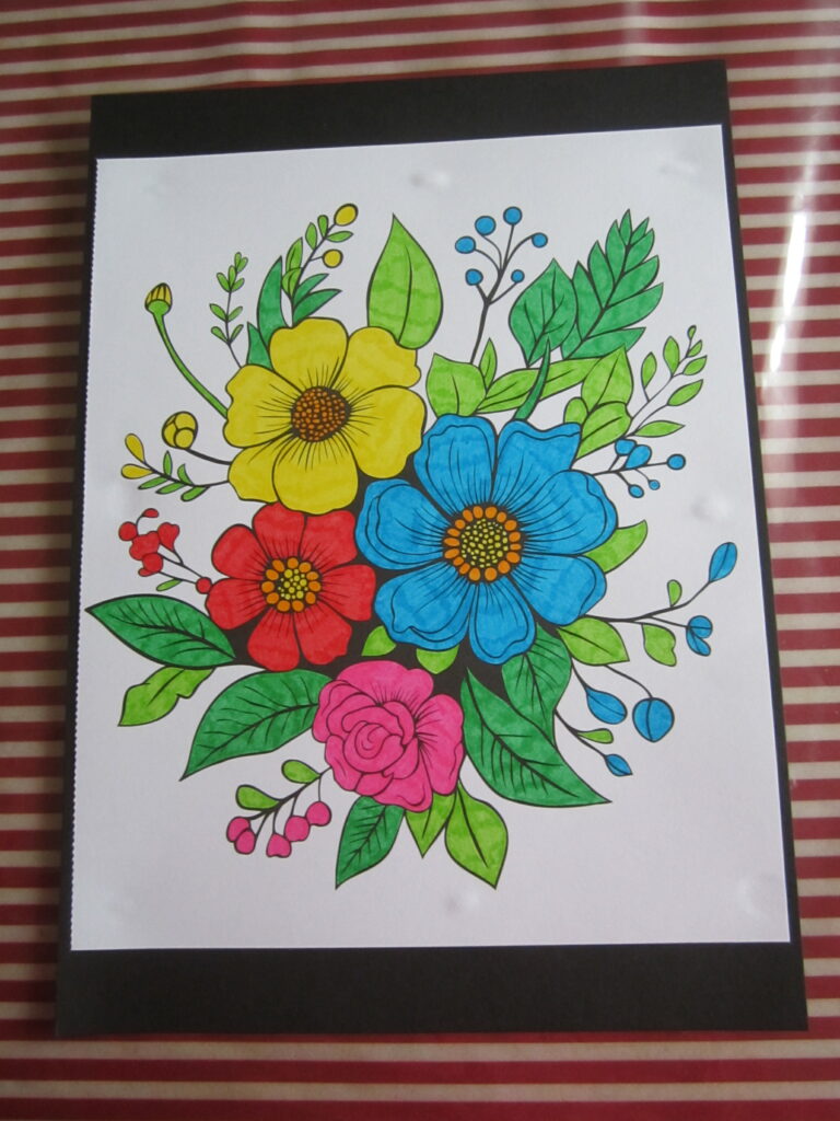 Bonjour! Me voici de nouveau pour vous présenter dix nouveaux dessins de fleurs. Ceux-ci ont été coloriés avec des feutres par mes soins. Voici les photos des dessins: