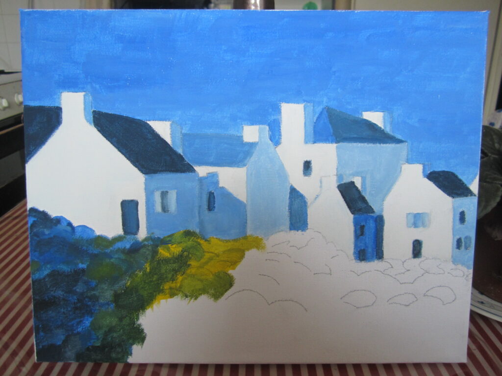 Voici un nouveau tableau à peindre en acrylique. Le dessin est déjà présent sur la toile blanche.